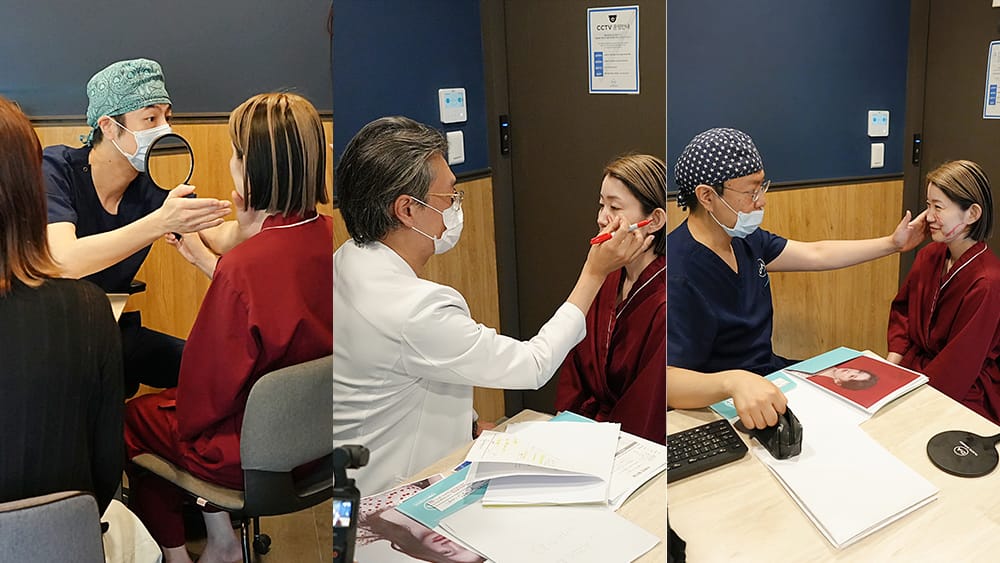 当日は朝9時にDA美容外科へ。朝から取材や動画撮影などしながら、検査、着替え、リスクの説明・手術同意書へのサインなどを済ませました。そして、ご担当いただく3名の院長との術前カウンセリングへ。