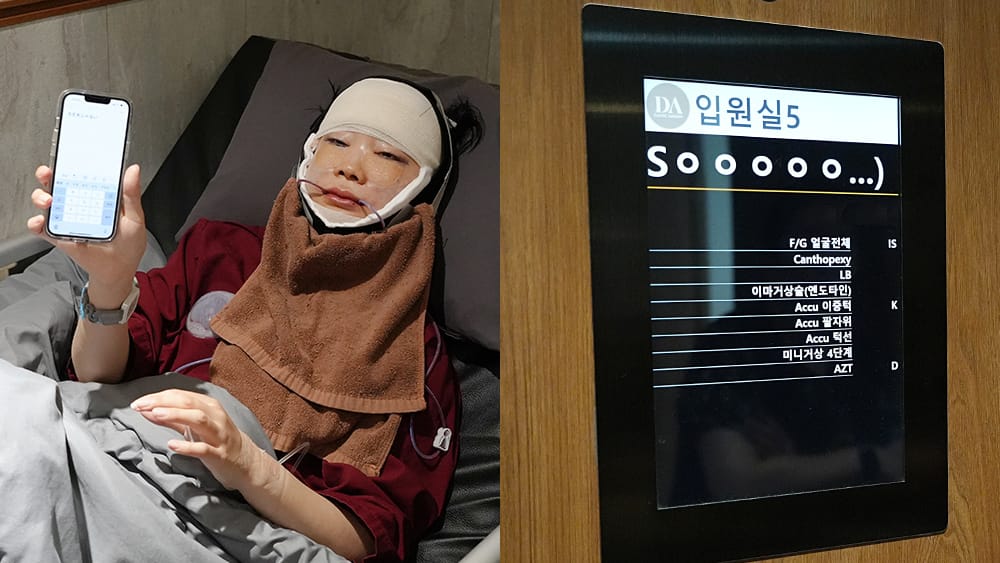 また、手術後に回復室から病室へ移動する際、日本語が通じないので看護師さんとはパパゴを使ったやり取りで、自分の思いがうまく伝わるか不安もありました。そんな中、翌朝に江南ビューティーラウンジのスタッフが顔を出してくれて、日本語に触れた瞬間ホッとしたのを覚えています。術後の説明も丁寧で、退院後の過ごし方も明確に案内してくださり、その後もLINEでフォローしてもらえたのでとても安心できました。
